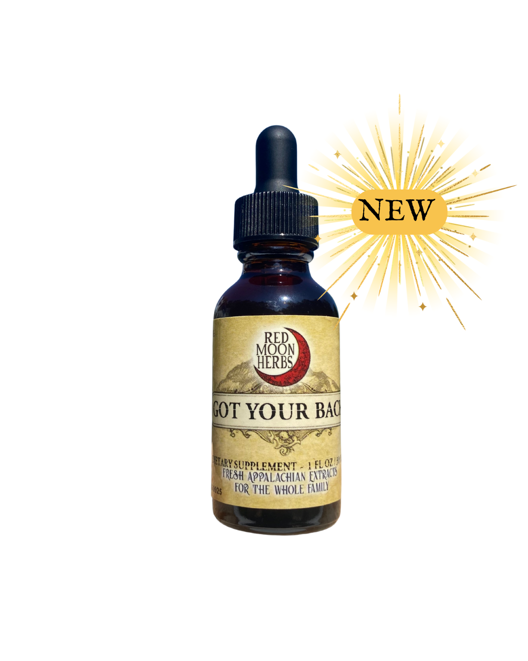 Our brand new product, Got Your Back, blends echinacea (Echinacea purpurea), goldenseal (Hydrastis canadensis), ginger (Zingiber officinale) and usnea (Usnea spp.) as a potent ally for your immune system. These herbs synergize to defend your body throughout the year.*