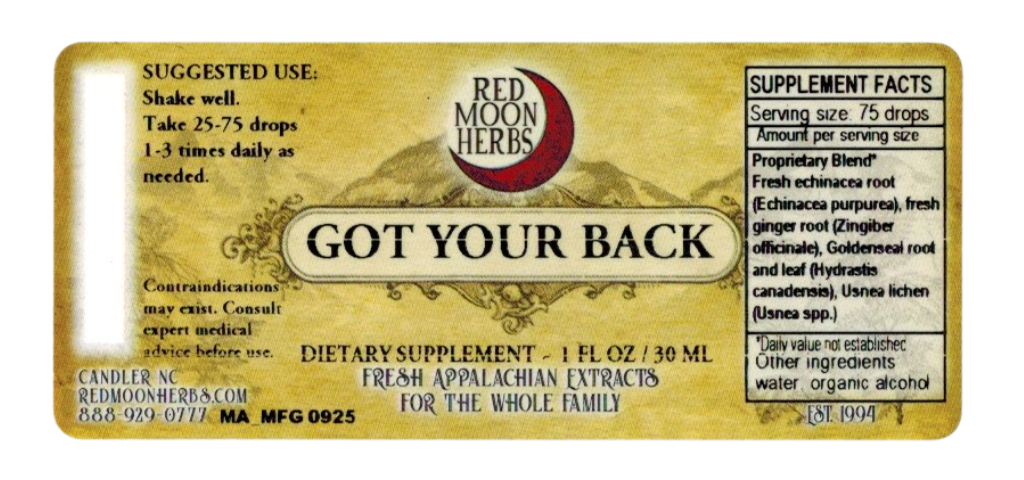 Got Your Back Herbal Extracts of Echinacea, Ginger, Goldenseal, and Usnea