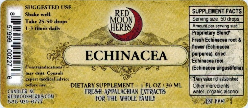 Certified organic cane alcohol, filtered water, fresh and dry echinacea root, fresh echinacea flowers (ALL ingredients non-GMO & gluten-free)